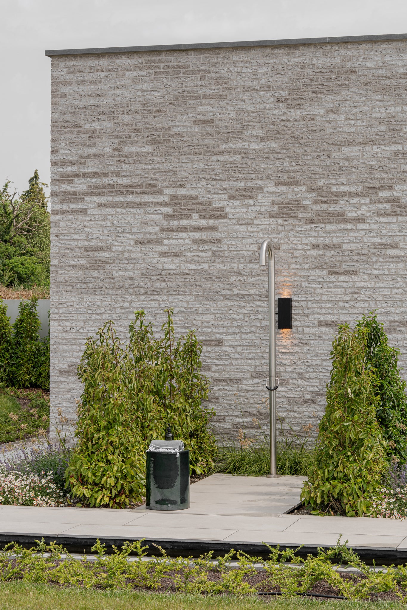 Onze buitendouche biedt warm en koud water, het hele jaar door.